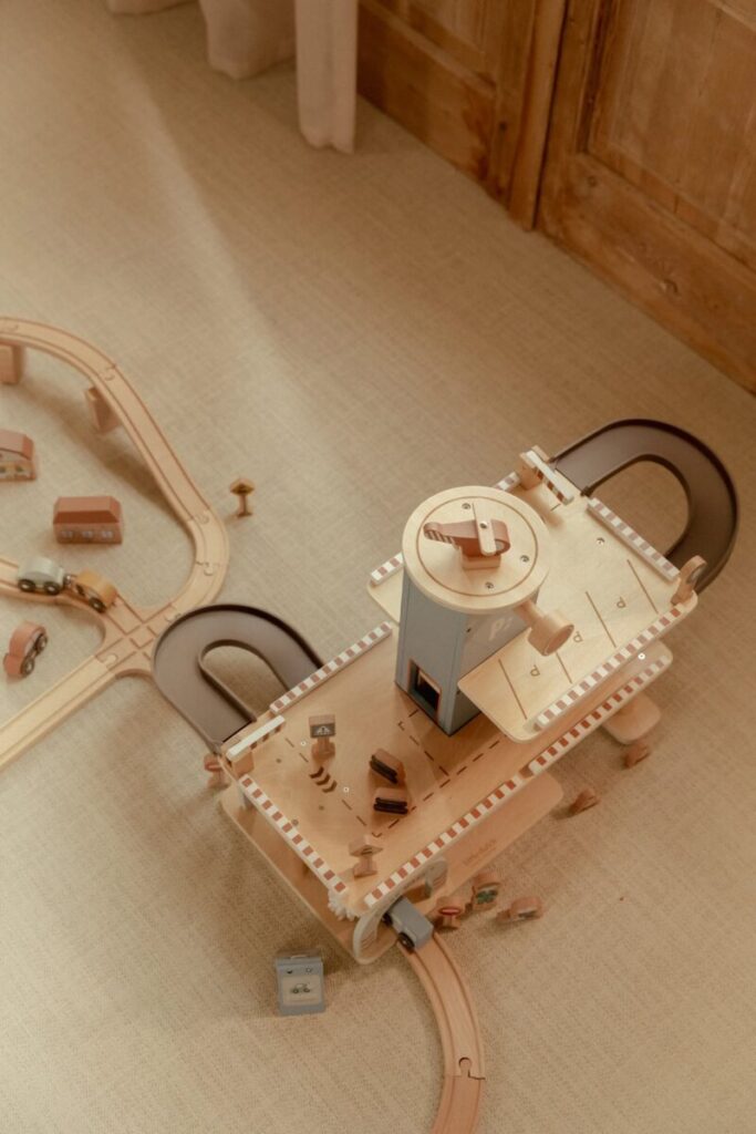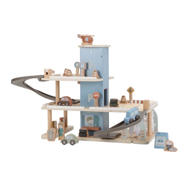 Parkuok, papildyk degalus ir lenktyniauk! Šis medinis žaislinis garažas puikiai papildo „Little Dutch Train Track XL“. Garaže yra pirmas aukštas su automobilių plovykla, dviem stovėjimo aikštelėmis ir elektros įkrovimo stotele, o viršuje – sraigtasparnio platforma. Rinkinyje yra mediniai priedai, tokie kaip kelio ženklai, sukrautos padangos ir kibiras. Taip pat yra trys transporto priemonės ir sraigtasparnis. Atvažiuok, pastatyk automobilį arba skrisk į kelionės tikslą. Nesibaigiančios pramogos garantuotos!