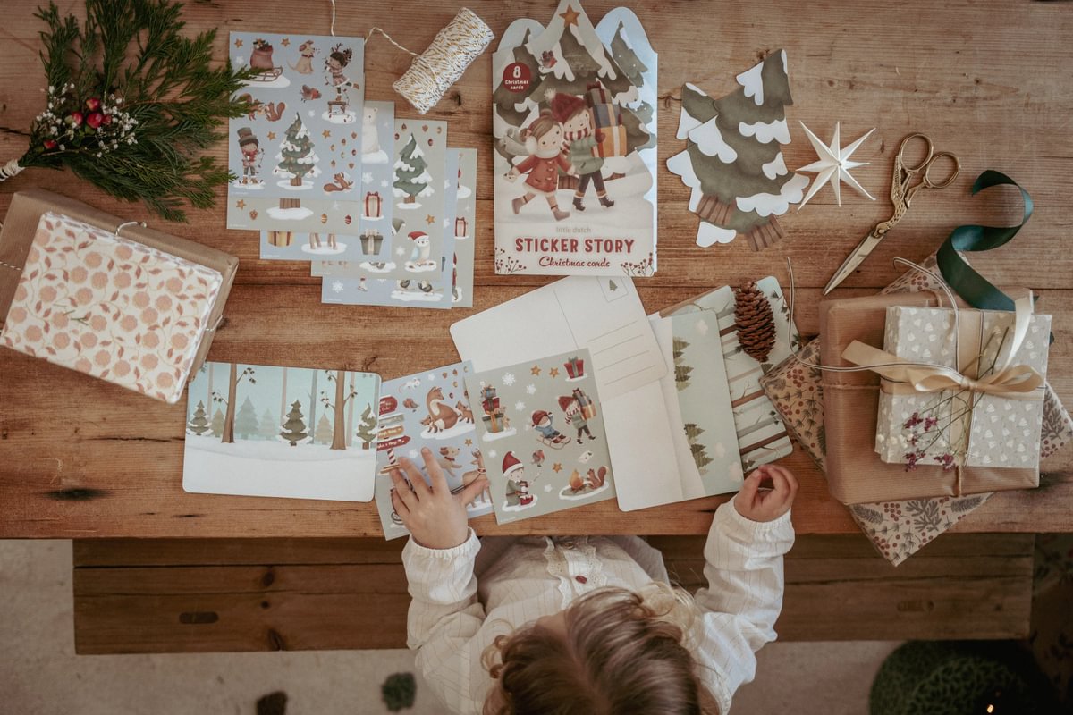 Little Dutch kalėdinių atvirukų ir lipdukų rinkinys „Kalėdos“