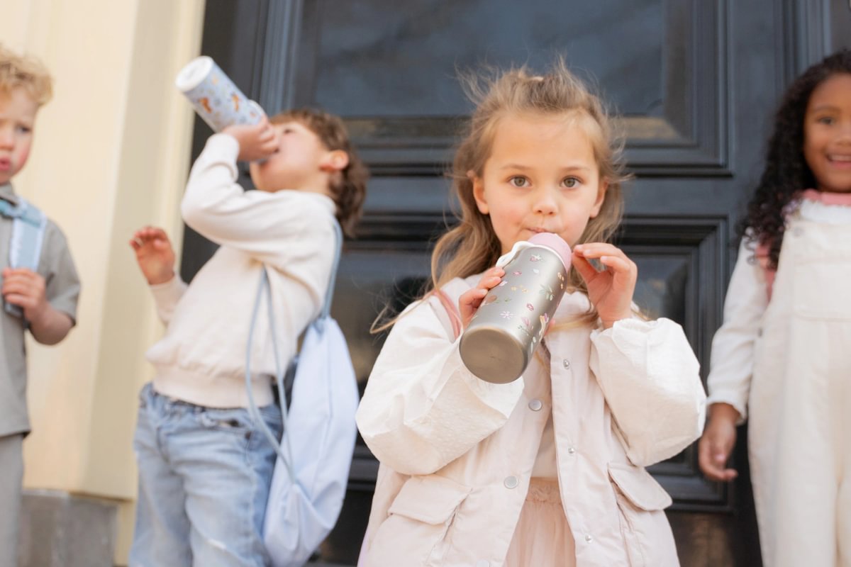 Gaivinantis gurkšnis mokyklos kieme ar keliaujant? Jūsų mažylio gėrimas išlieka vėsus iki dvylikos valandų, o šilti gėrimai – maloniai šilti iki keturių valandų. Patogi atlenkiama sistema leidžia gerti ypač lengvai, net ir mažoms rankytėms. Butelis yra dvigubos sienelės, nepralaidus vandeniui ir turi prie snapelio prijungtą šiaudelį. Taip pat tinka gazuotiems gėrimams, nors rekomenduojame nuimti šiaudelį ir nepripildyti buteliuko iki galo. Dėl nešiojimo kilpos buteliuką galite pasiimti bet kur. Dangtelį galima plauti indaplovėje, bet geriausia buteliuką plauti rankomis.